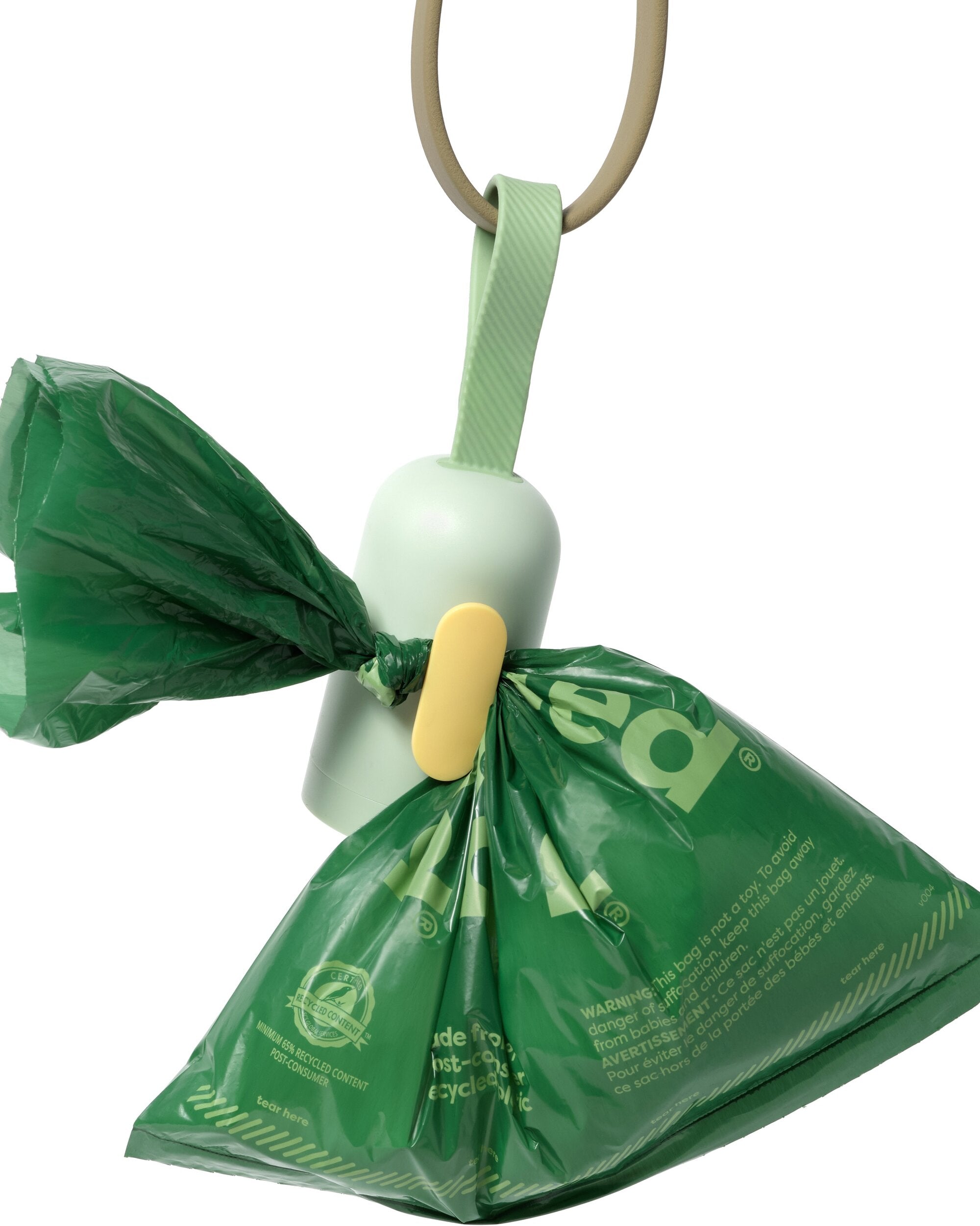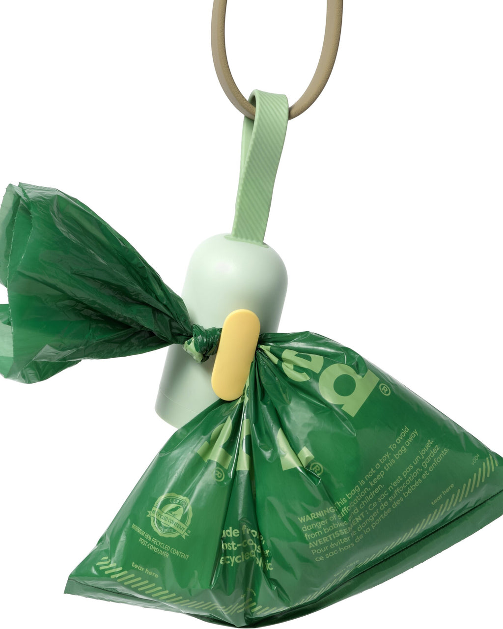 Bagpå dispenseren er der en praktisk krog til den fyldte pose, så du er fri for at have den i lommen.