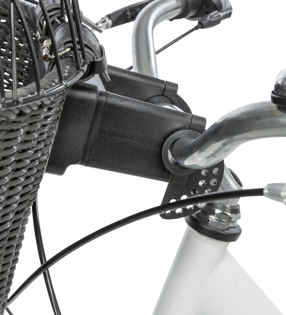 Sammen med kurven følger beslag til din cykel, som gør at kurven er nem at klikke af. Samtidig er kurven fast og sikker spændt på cykelstyret.
