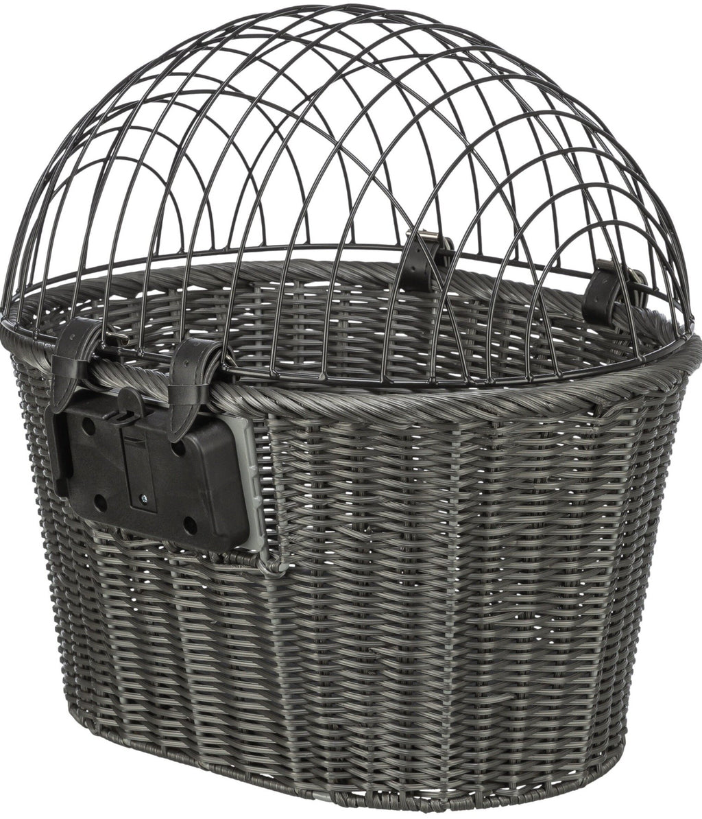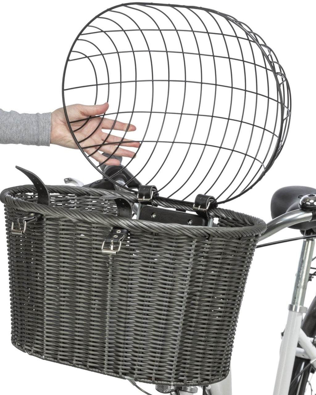 Cykelkurven er også udstyret med gitter, så du ikke skal være bange for at din hund hopper ud. Gitteret sidder fast med 2 fine læderstropper, men er gitteret ikke nødvendigt, kan du nemt tage det af.
